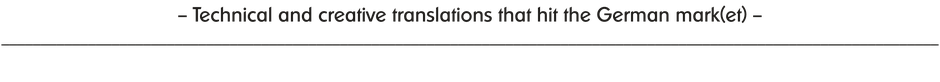 As a technically skilled translator and creative editor I will take care that all your contents hit the German mark(et). After all, I will not only translate, but localise and transcreate your texts into my native language: German – my good tone for your sound satisfaction.